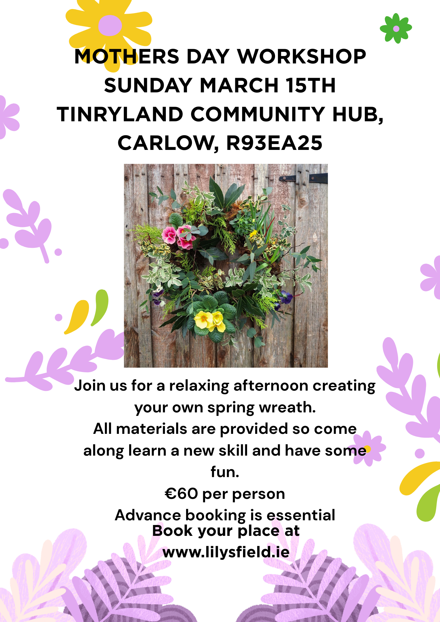 For Mother’s day or just for fun this workshop will show you how to make a fresh door wreath for springtime.
